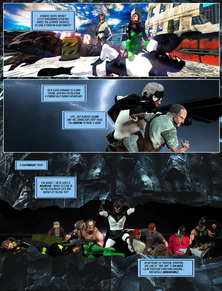 It’s possible the final strips are tucked away somewhere, still undiscovered. Or they’re in a landfill. It’s also entirely possible I didn’t bother to tie things up neatly in the first place. In any case, I decided to use the 30th anniversary to have another go at the ending and, y’know, actually write one. Enjoy!
